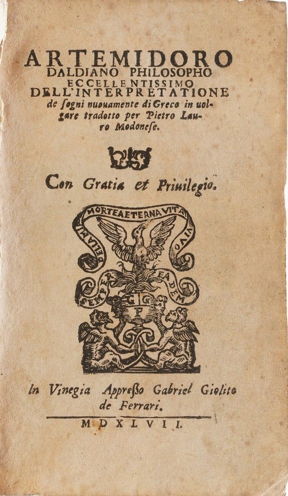 Artemidoro Daldiano Artemodoro..dell'interpretazione dei sogni...tradotto per Pietro [..]