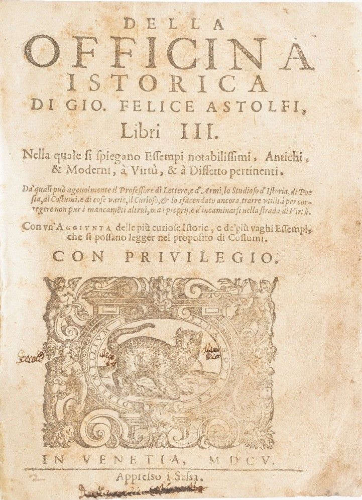 Astolfi Gio Felice Della Officina Istorica... Venezia, Sessa, 1605.