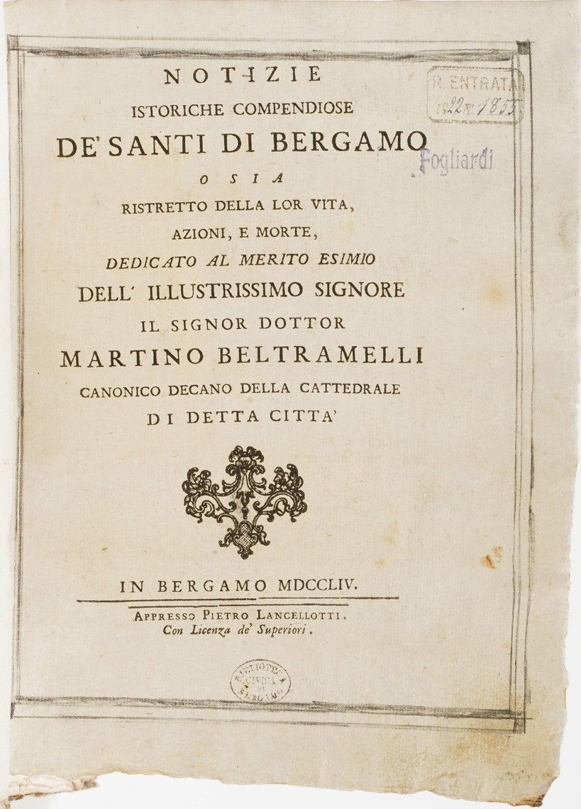 Autori vari Notizie istoriche compendiose dei santi di Bergamo, ossia ristretto [..]
