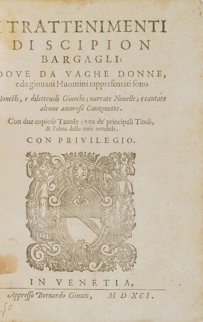 Bargagli Scippione I Trattenimenti... in Venetia appresso Bernardo Giunti 1591.