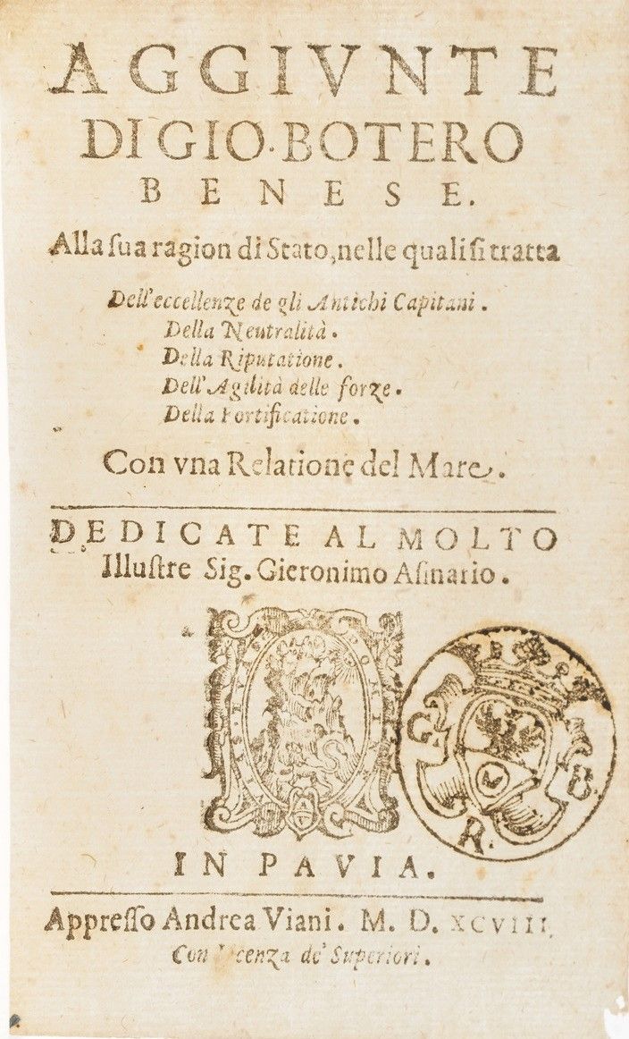 Botero Giovanni Aggiunte di Gio Botero Benese alla sua ragion di stato...In Pavia, [..]