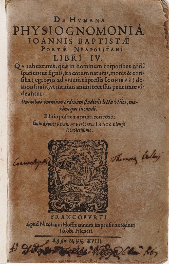 Della Porta, Giovanni Battista De Humana Physiognomonia...Francofurti, Apud Niculaum [..]
