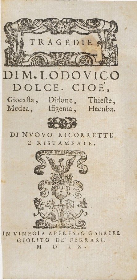 Dolce Lodovico Tragedie... di nuovo ricorrette e ristampate... in Vinegia appresso [..]