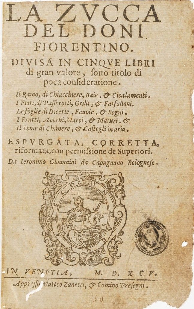Doni Anton Francesco La zucca...in Venezia, Matteo Zanetti e Comino Presegni, 15 [..]