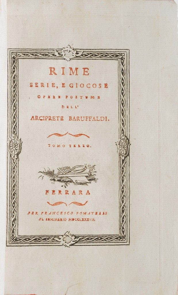 Girolamo Baruffaldi Rime serie, e giocose. Opere postume dell'arciprete Baruffaldi. [..]