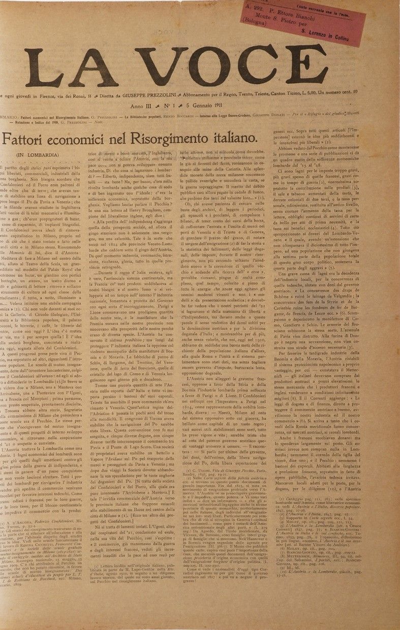 Giuseppe Prezzolini Raccolta rilegata in cinque volumi di alcune decine di numeri [..]