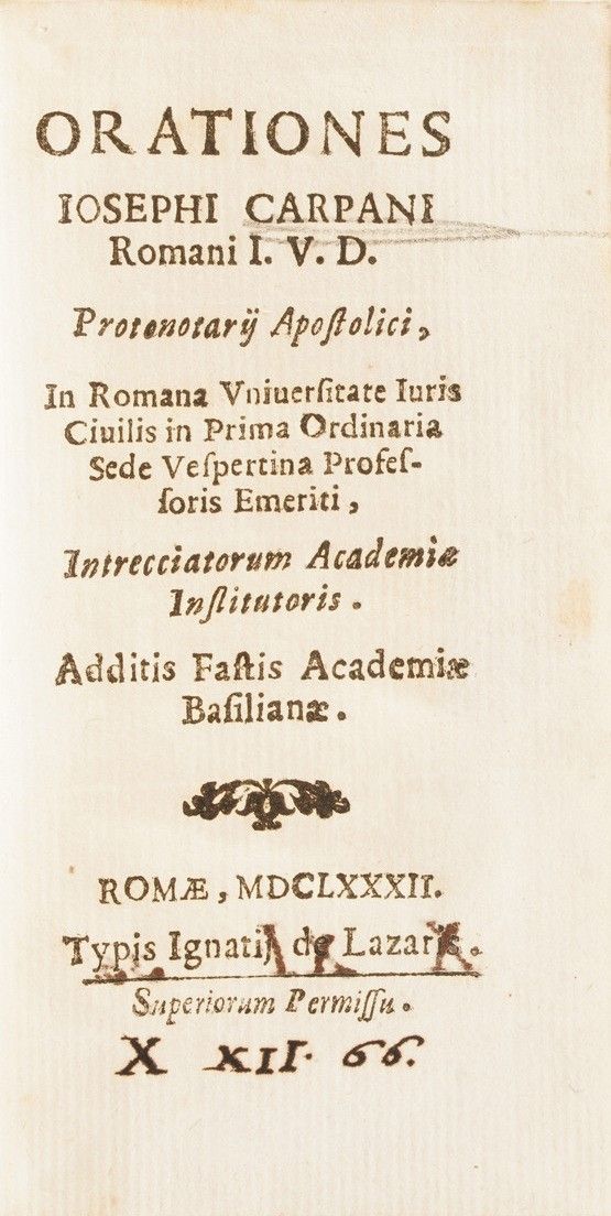Iosephi Carpani Orationes... Roma, 1682