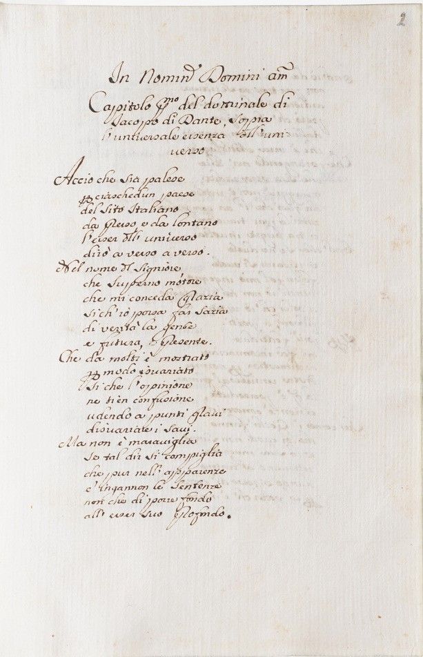 Jacopo di Dante - manoscritto cartaceo Sopra l'universale essenza dell'universo... [..]