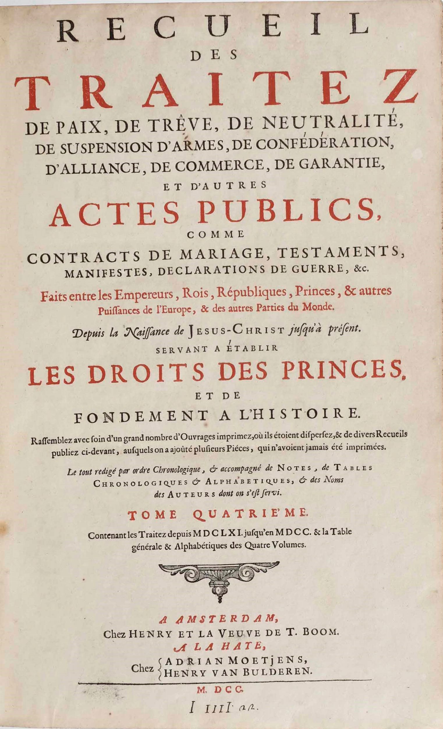 Jacques Bernard Recueil des traitez de paix, de treve, de neutralité, de confederation, [..]