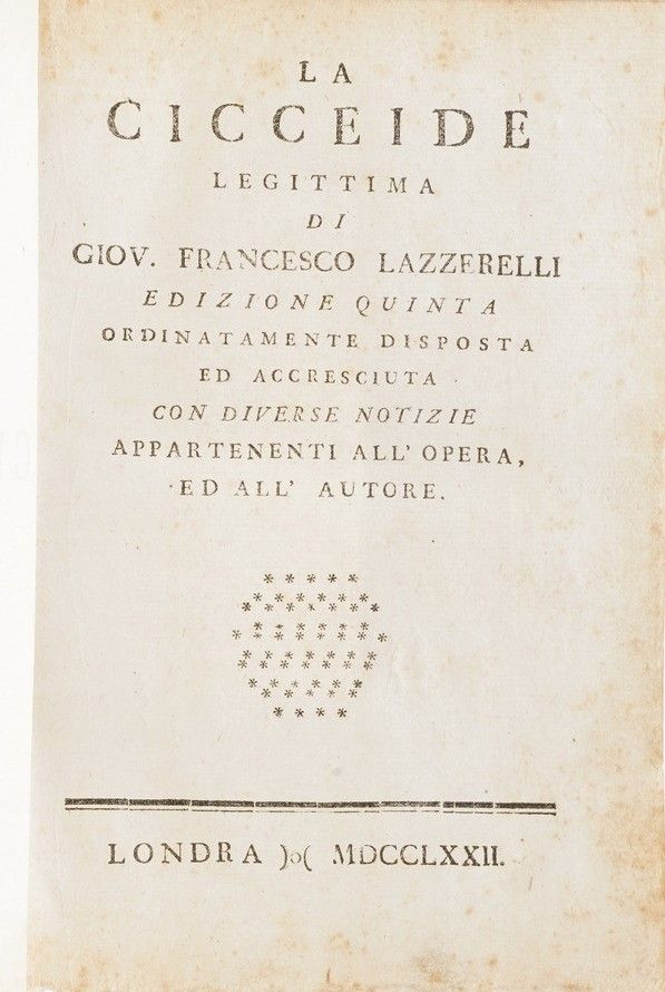 Lazzarelli Giovanni Francesco La Cicceide legittima...edizione quinta...Londra,1 [..]