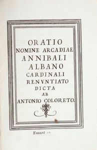 Antonio Coloreto Oratio nomine Arcadiae Annibali Albano...Roma, sec XVII-XVIII