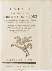 Lorenzo De Medici Poesie del Magnifico, Bergamo, Lancellotti, 1763