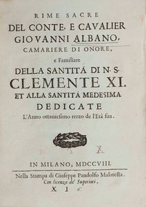 Giovanni Albano Rime Sacre, in Milano, nella Stampa si Giuseppe Gandolfo Malatesta, [..]
