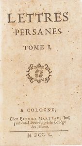 Montesquieu Charles-Louis de Secondat Lettres Persanes, A Cologne, Pierre Marteau, [..]