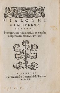 Speroni Sperone Dialoghi... nuovamente ristampati in Venetia, per Francesco Lorenzini, [..]