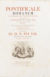 Legature in marocchino rosso, secolo XIX. Pontificale Romanum. P. P. Pio VII. Urbino, [..]