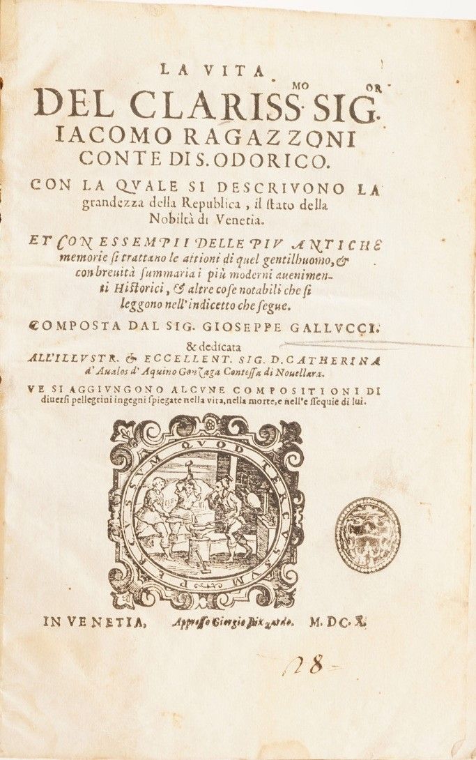Lotto di libri La vita dell’illustre signor Giacomo Ragazzoni conte di s. Odorico, [..]