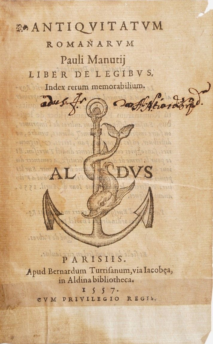 Manuzio Paolo. Antiquitatum romanarum... liber de legibus...Parigi, Berardo Torresani, [..]