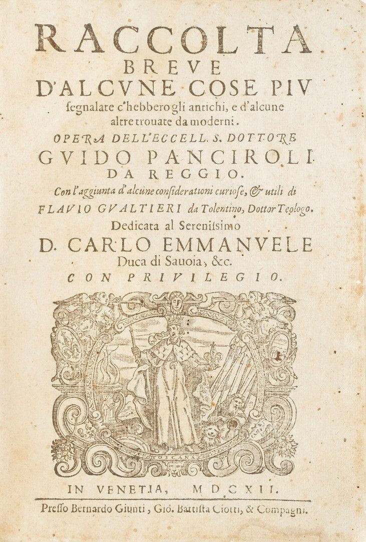 Panciroli Guido Raccolta breve di alcune cose più segnalate che ebbero gli antichi...Venezia, [..]