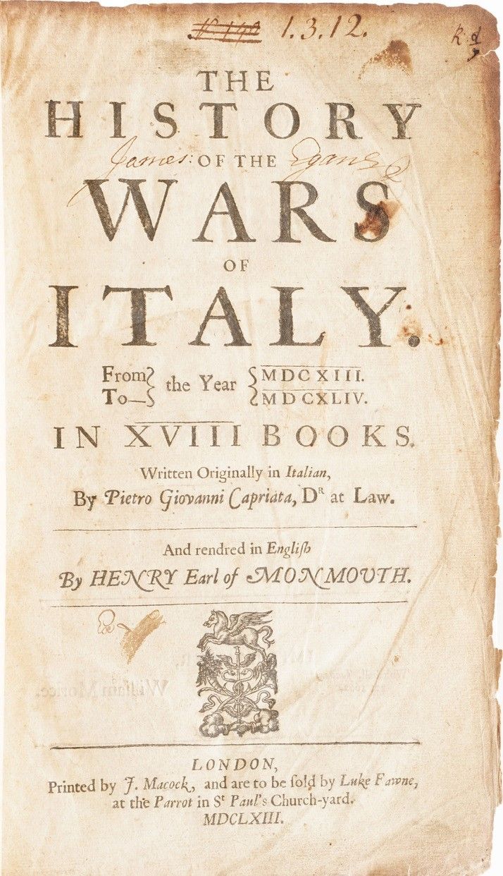 Pietro Giovanni Capriata The history of the wars of Italy from to the year 1613 [..]
