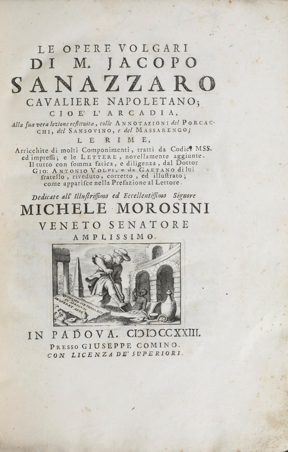 Sannazzaro Jacopo Le opere volgari... in Padova presso Giuseppe Comino, 1723