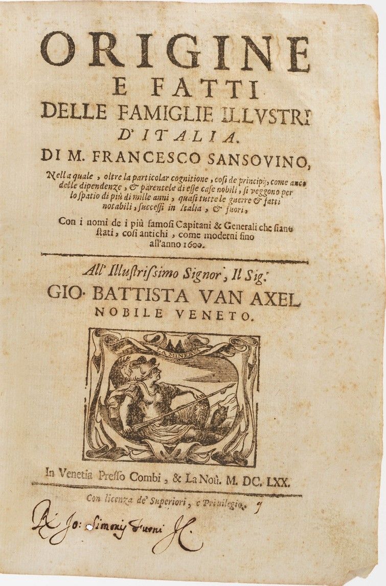Sansovino Francesco. Origine e fatti delle famiglie illustri d'Italia... In Venetia [..]