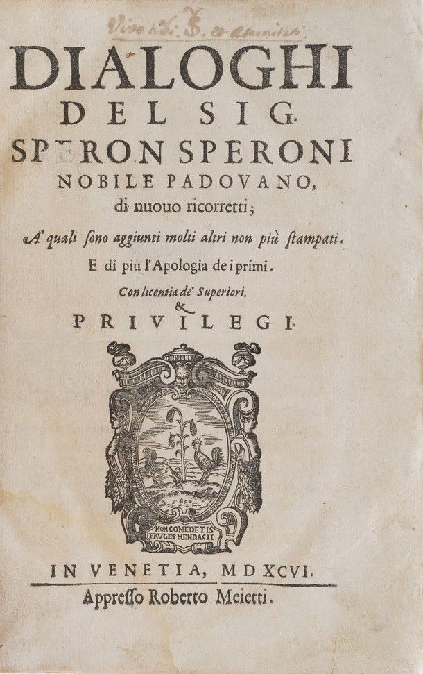 Speroni Sperone Dialoghi del Signor... nobile Padovano in Venetia appresso Roberto [..]
