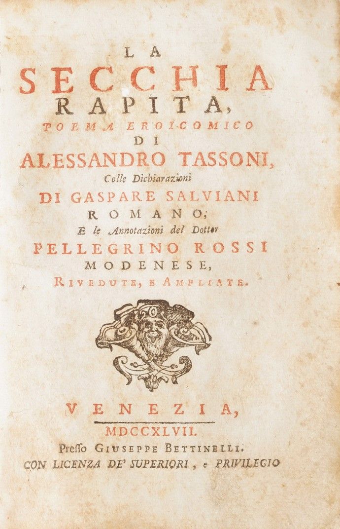 Tassoni Alessandro La secchia rapita...Venezia, Bettinelli, 1747.