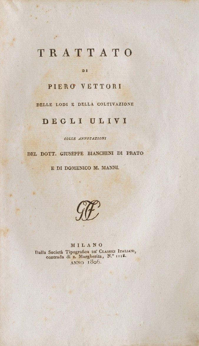 Vettori Piero Trattato delle lodi e della coltivazione degli ulivi, Milano, Tipografia [..]