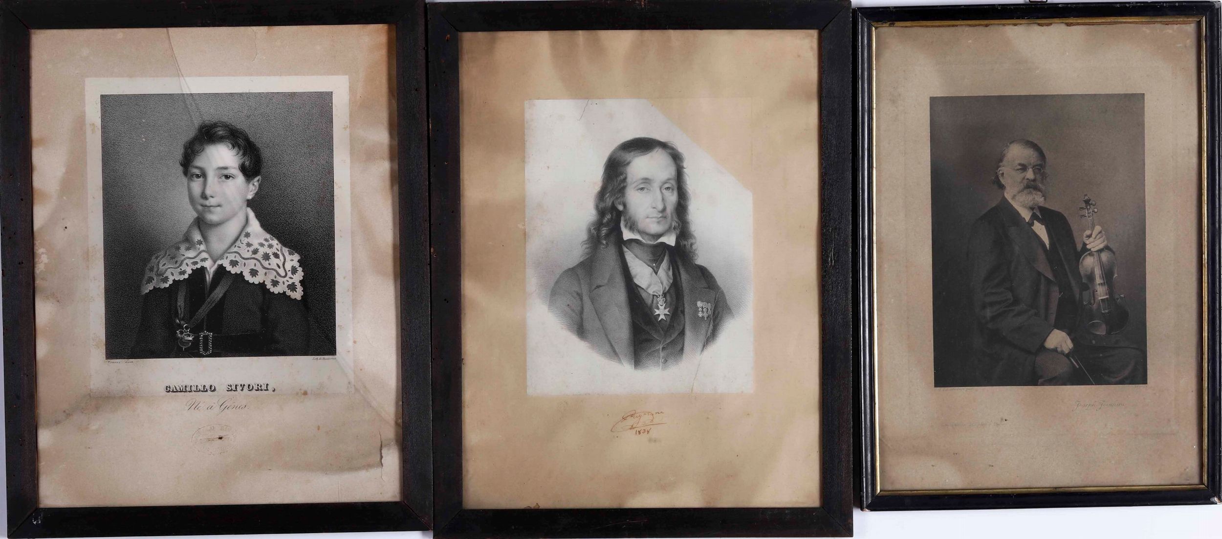 Compositori e violinisti. Tre ritratti incisi raffiguranti violinisti