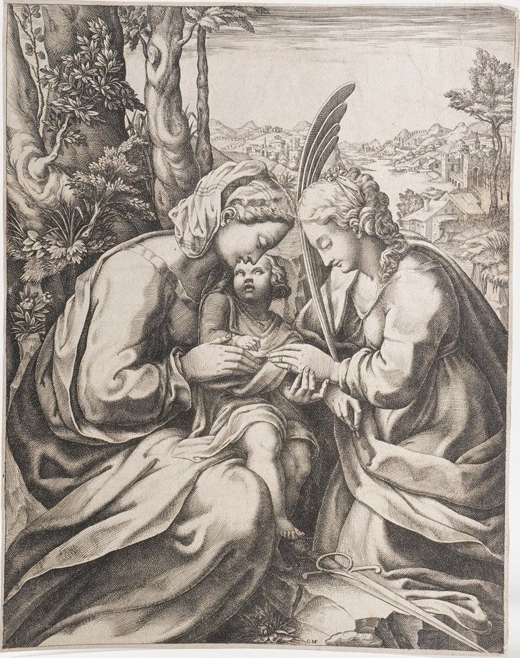 Ghisi Giorgio, Mantova (1520-1582) Matrimonio mistico di Santa Caterina (1575)