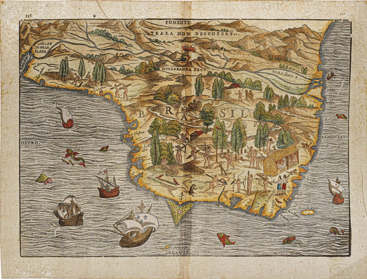 Giovanni Battista Ramusio Carta silografica raffigurante parte del Brasile... Venezia, [..]