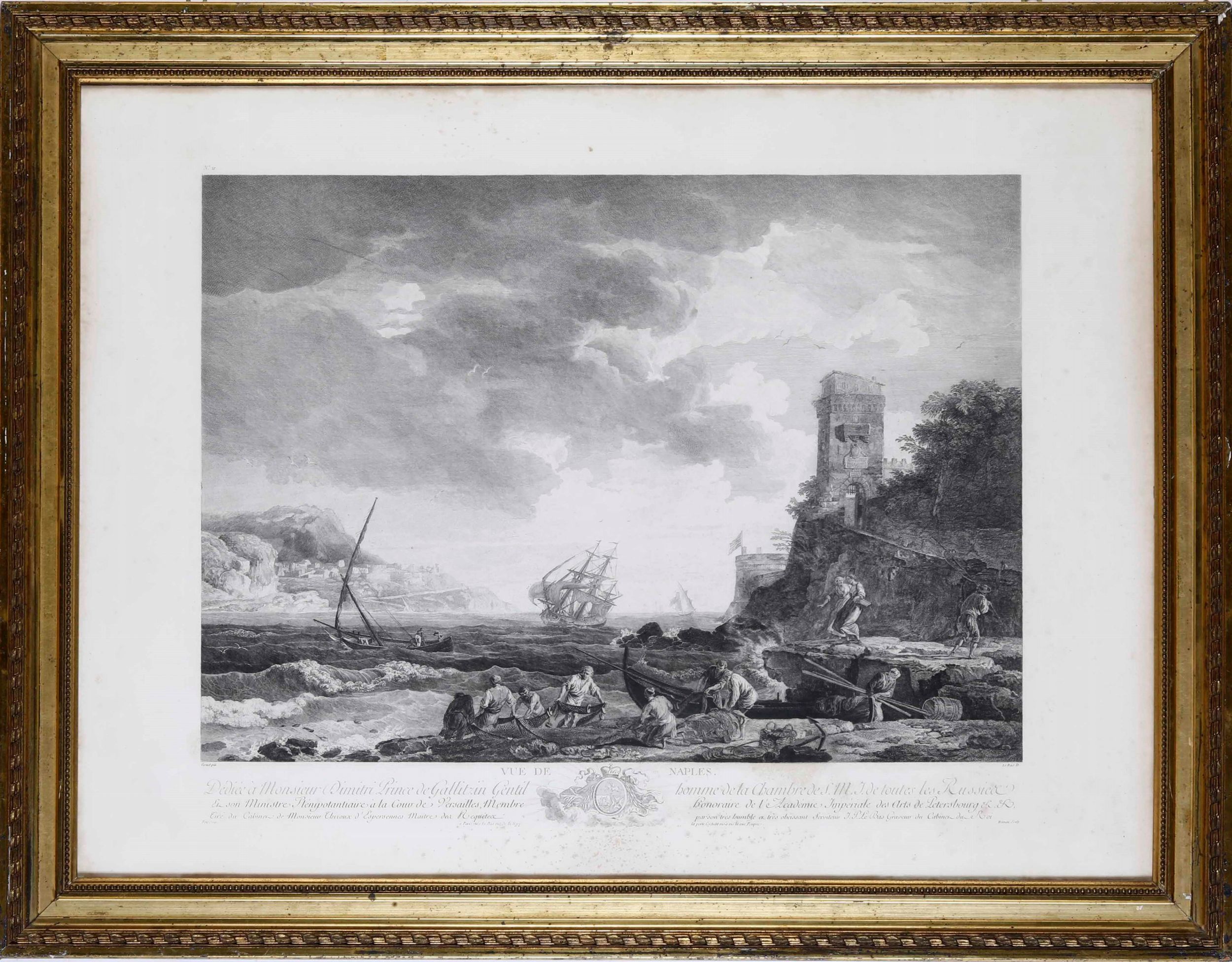 Le Bas- Robert Daudet. Vedute di Napoli e Posillipo, Francia secolo XVIII