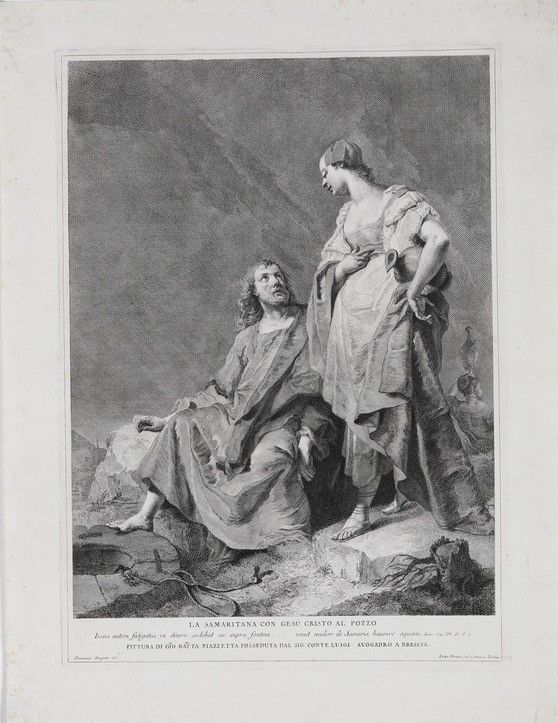Pietro Monaco-Domenico Maggiotto. La samaritana con Gesù Cristo al pozzo. Incisione [..]