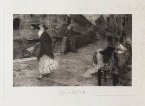 Acquaforte originale , firmata in lastra. De Vesme-Massar 1149 III/IV; mm 80 x 160 [..]