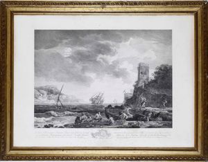 Le Bas- Robert Daudet. Vedute di Napoli e Posillipo, Francia secolo XVIII