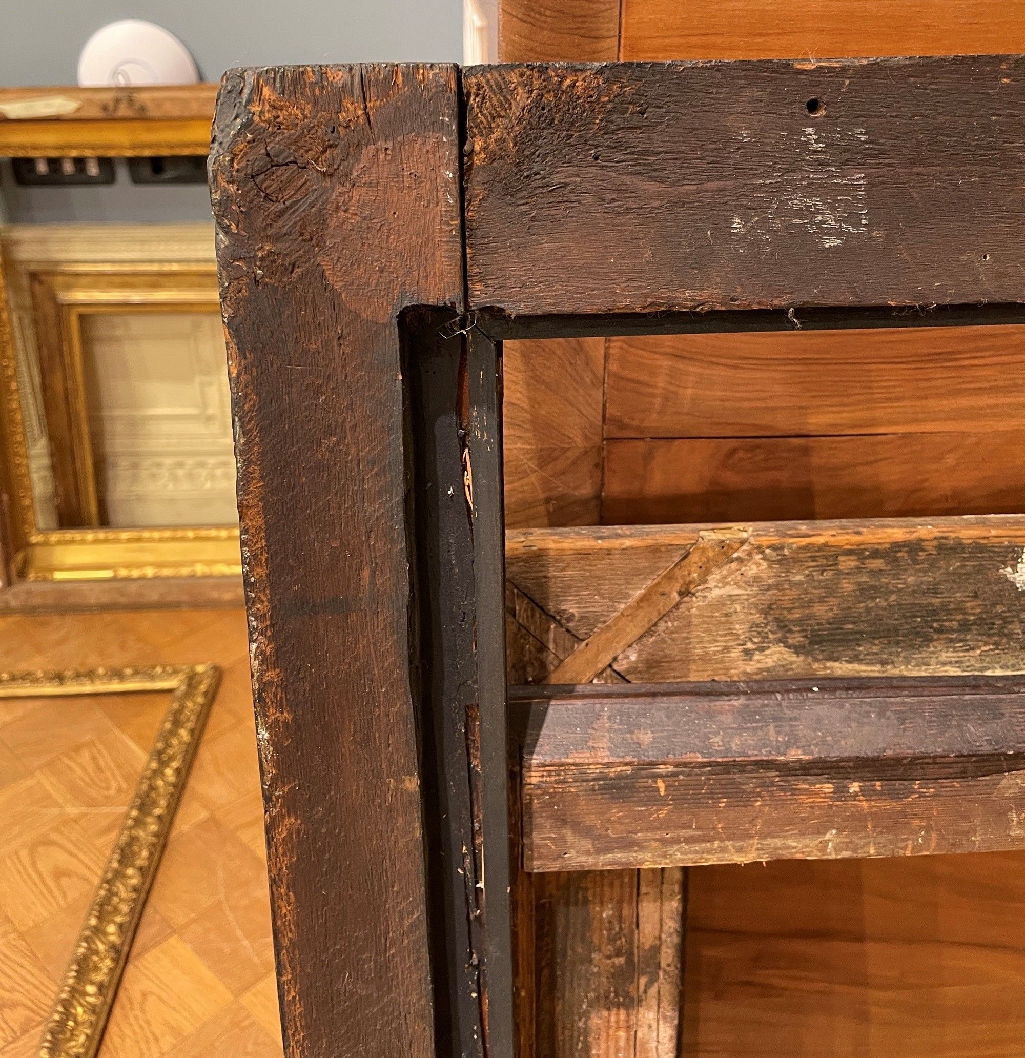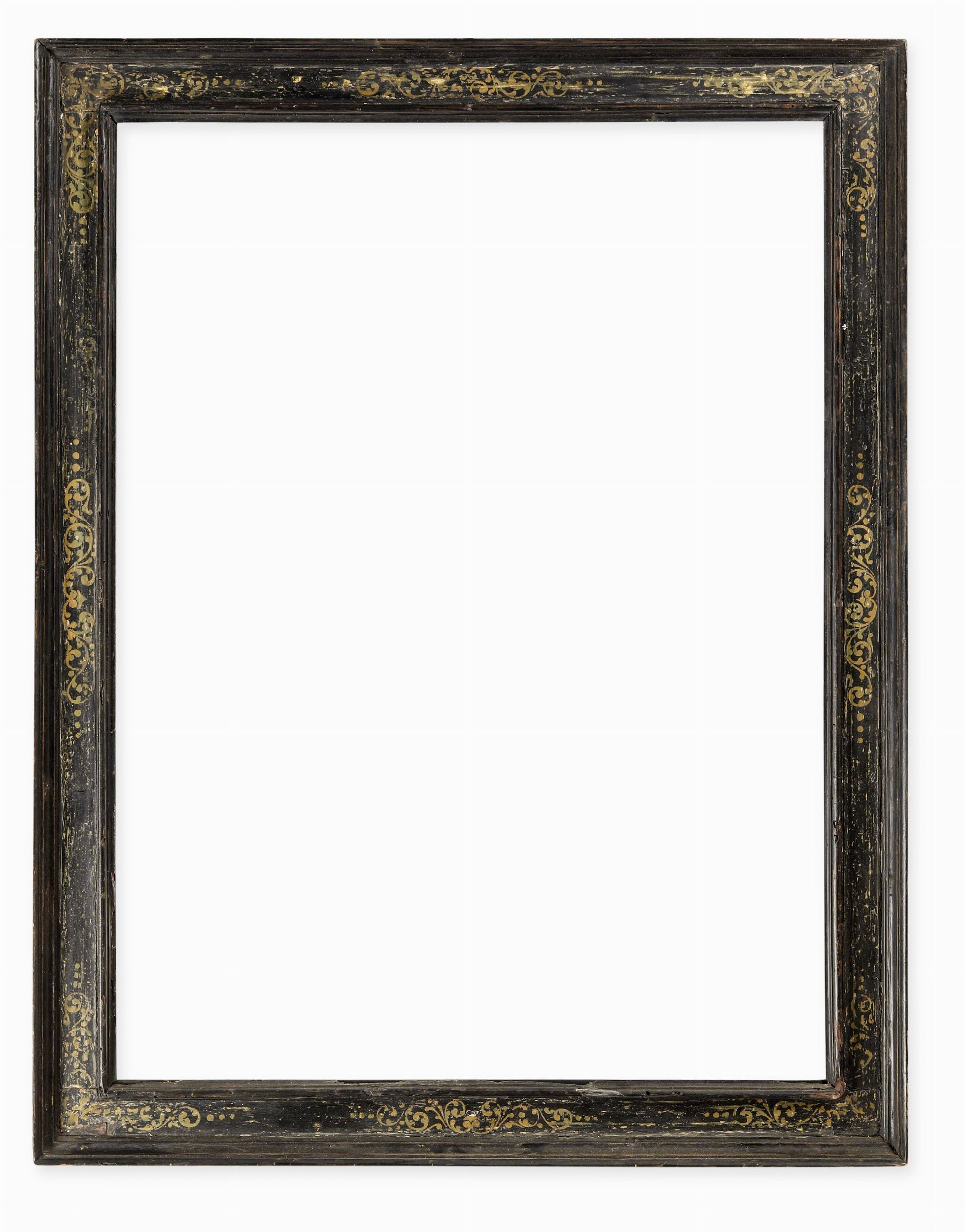 Cornice a cassetta in legno ebanizzato con decoridi racemi dorati, XVII secolo