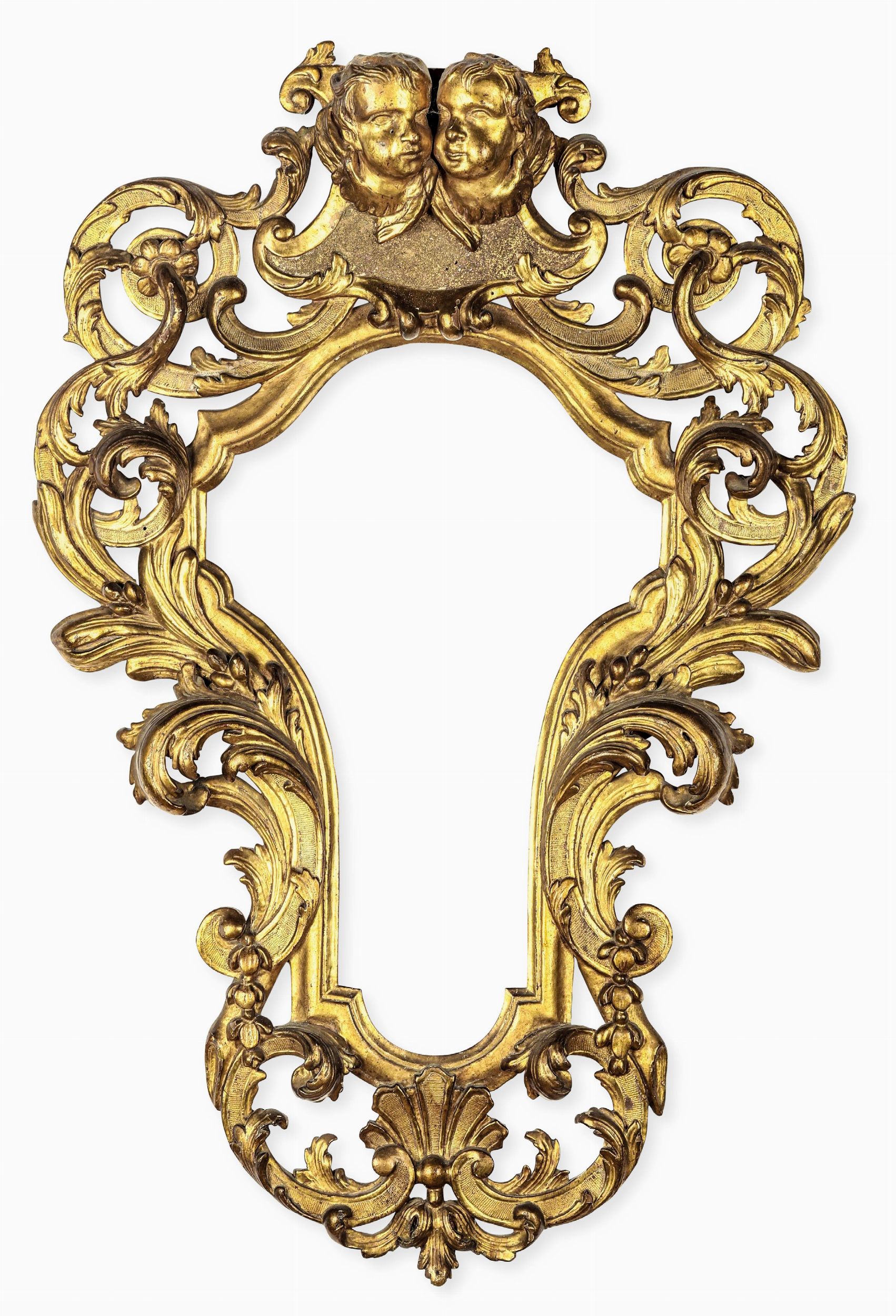 Cornice barocca in legno intagliato, traforato e dorato. Genova XVIII secolo