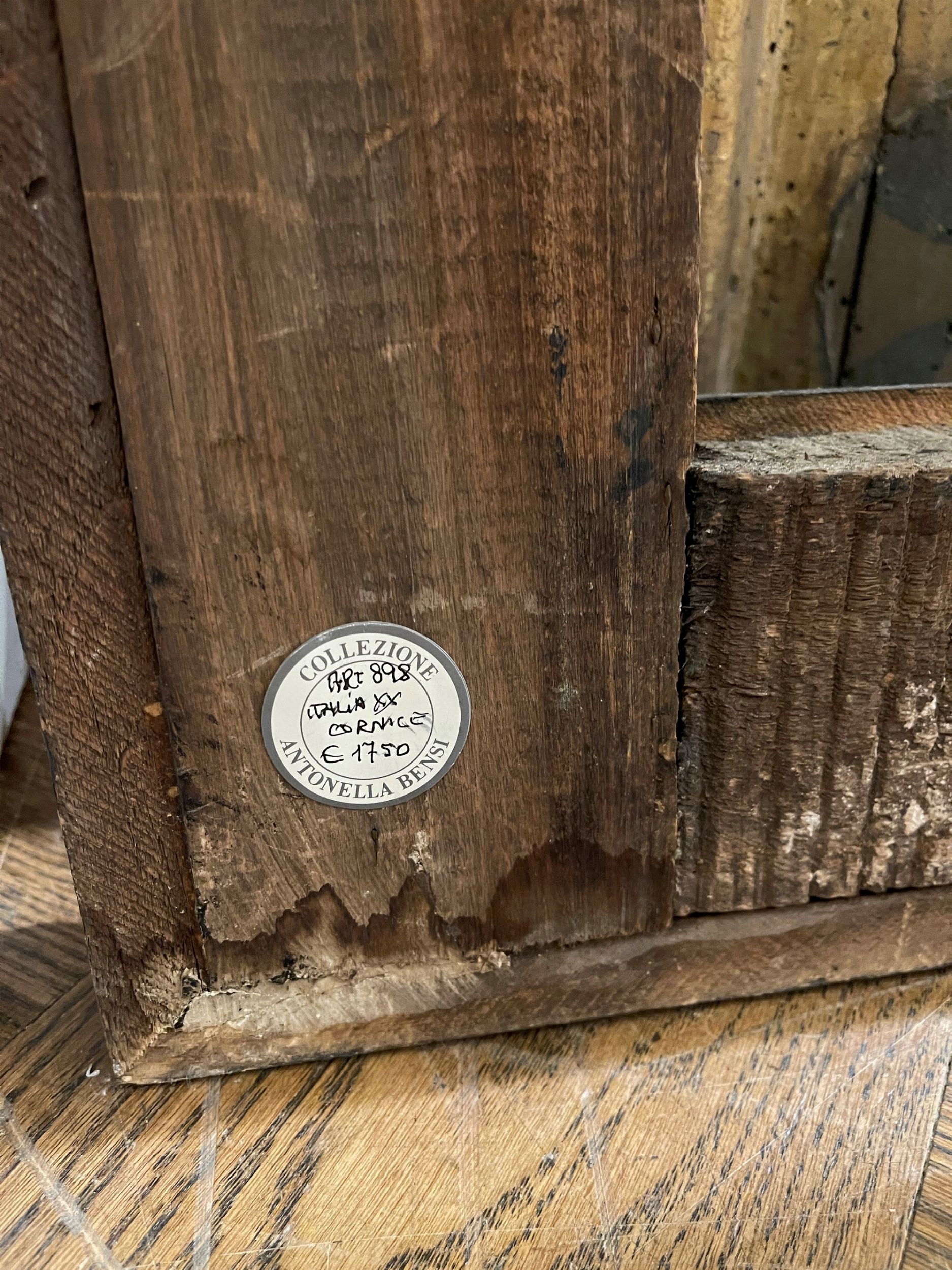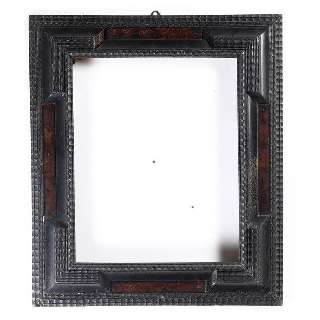 Cornice guillochè in legno intagliato, ebanizzato con riserve a finta tartaruga. [..]