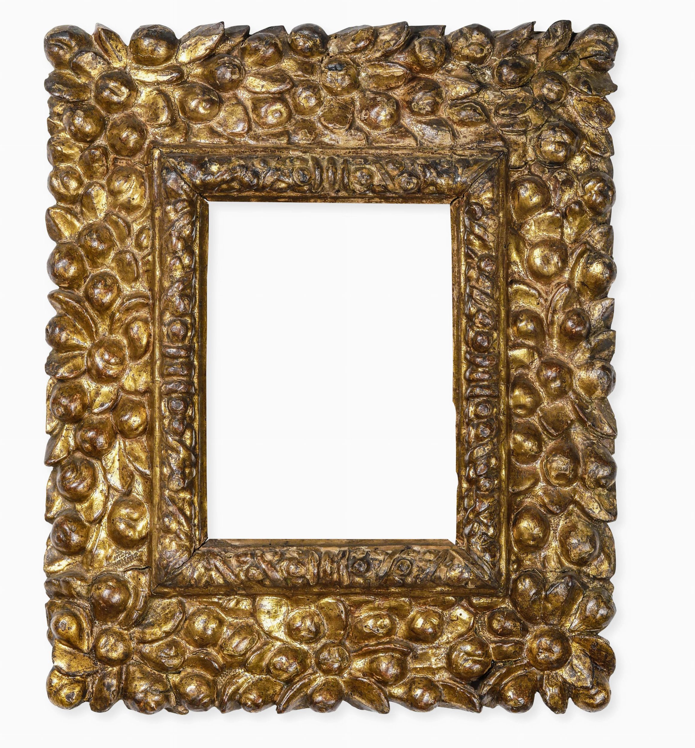 Cornice in legno intagliato a frutti e dorato. Emilia, XVI secolo