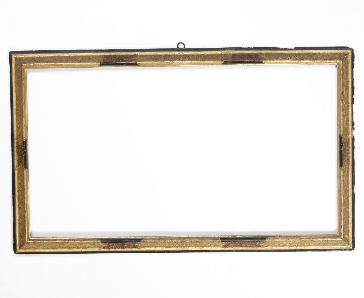 Cornice in legno intagliato, dorato e inciso. Marche metà XVIII secolo