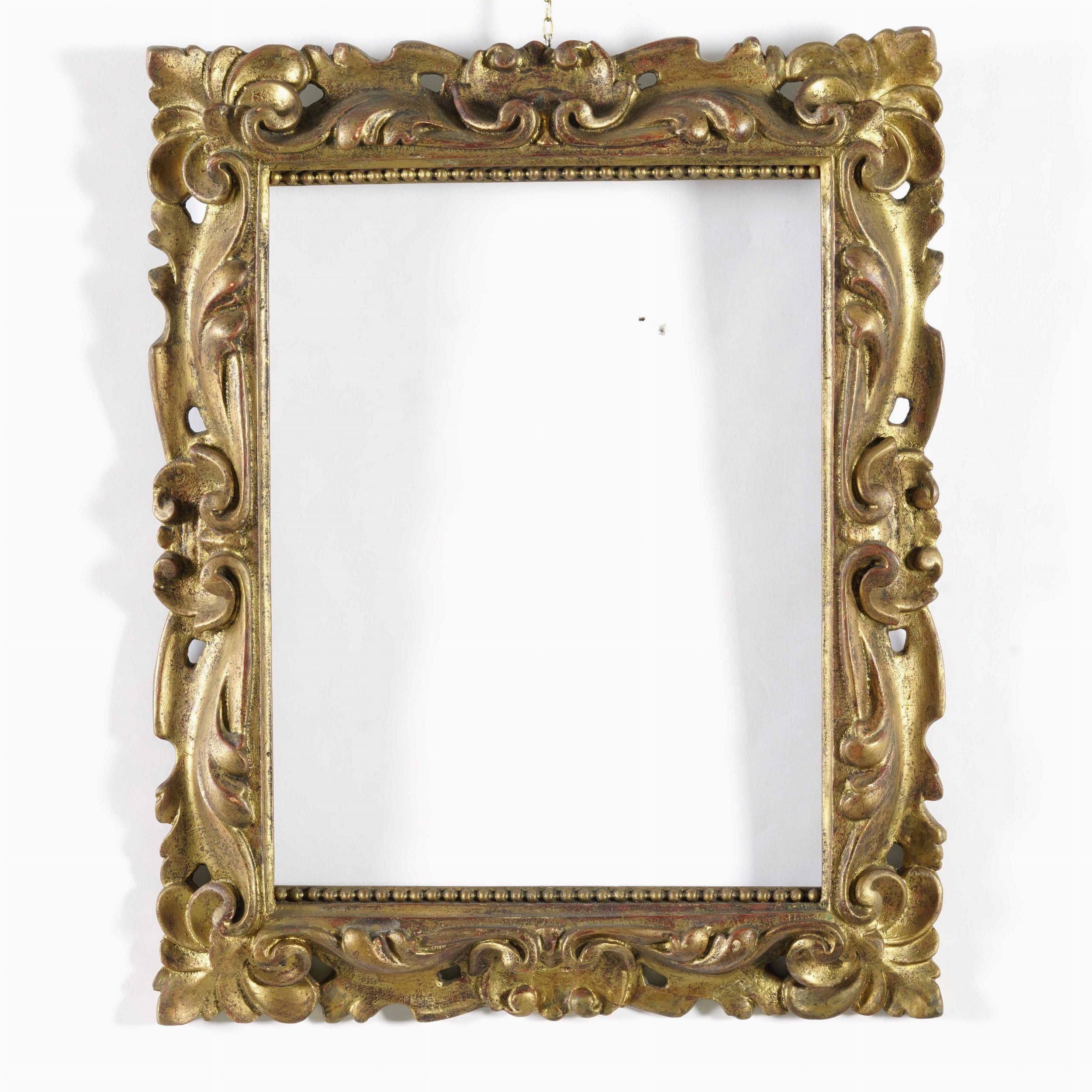 Cornice in legno intagliato, traforato e dorato. XX secolo
