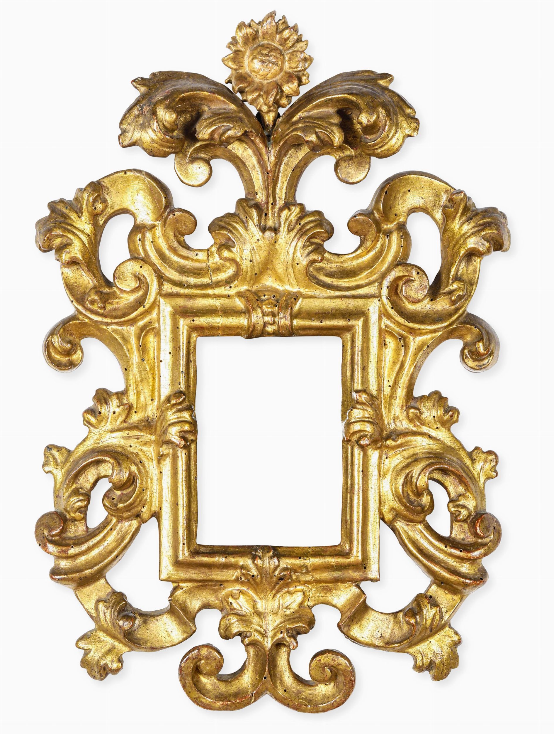 Cornice in legno intagliato, traforato e dorato a volute e fiori. Emilia, XVII s [..]