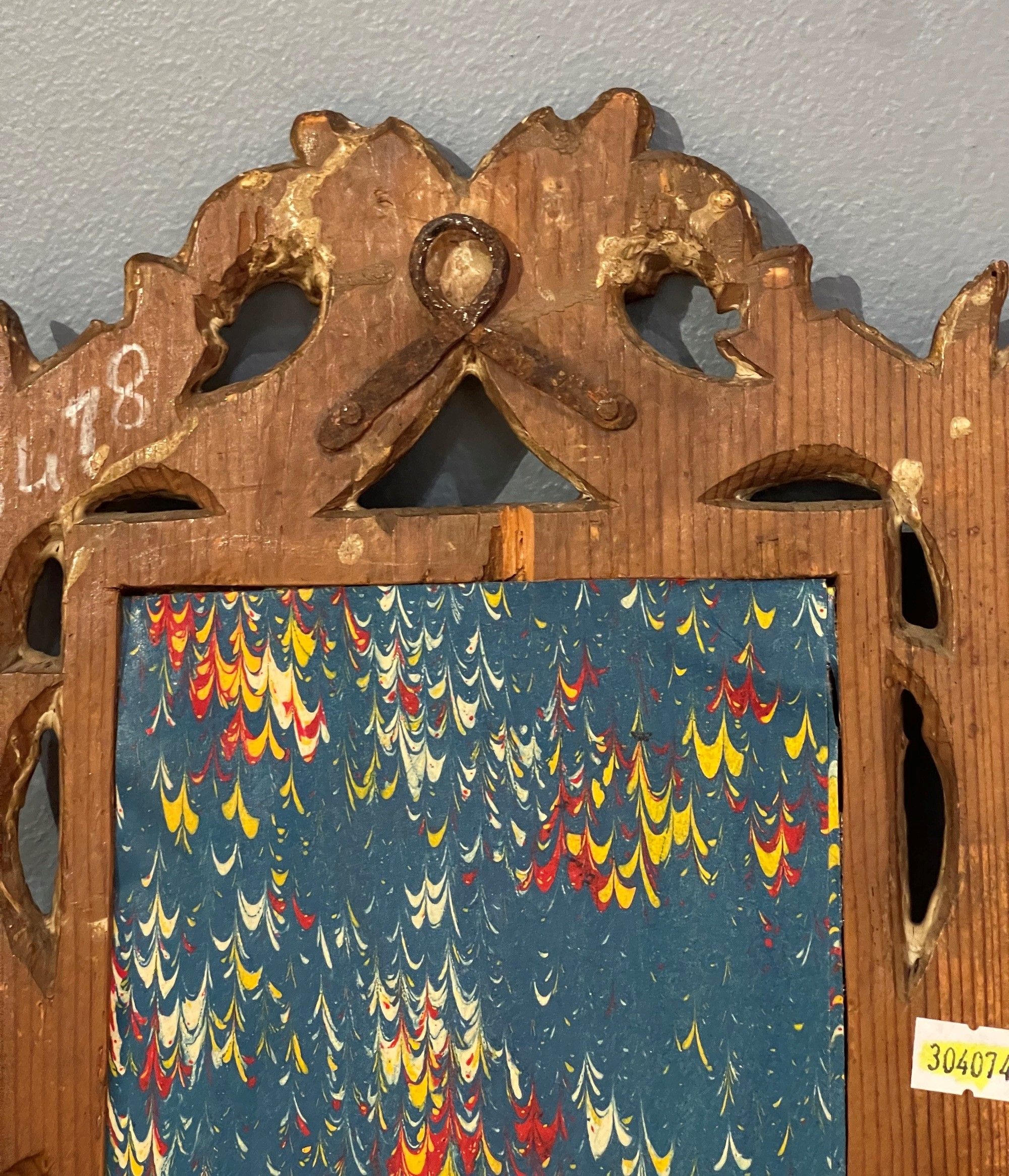 Cornice in legno intagliato, traforato e dorato. Italia XVIII secolo