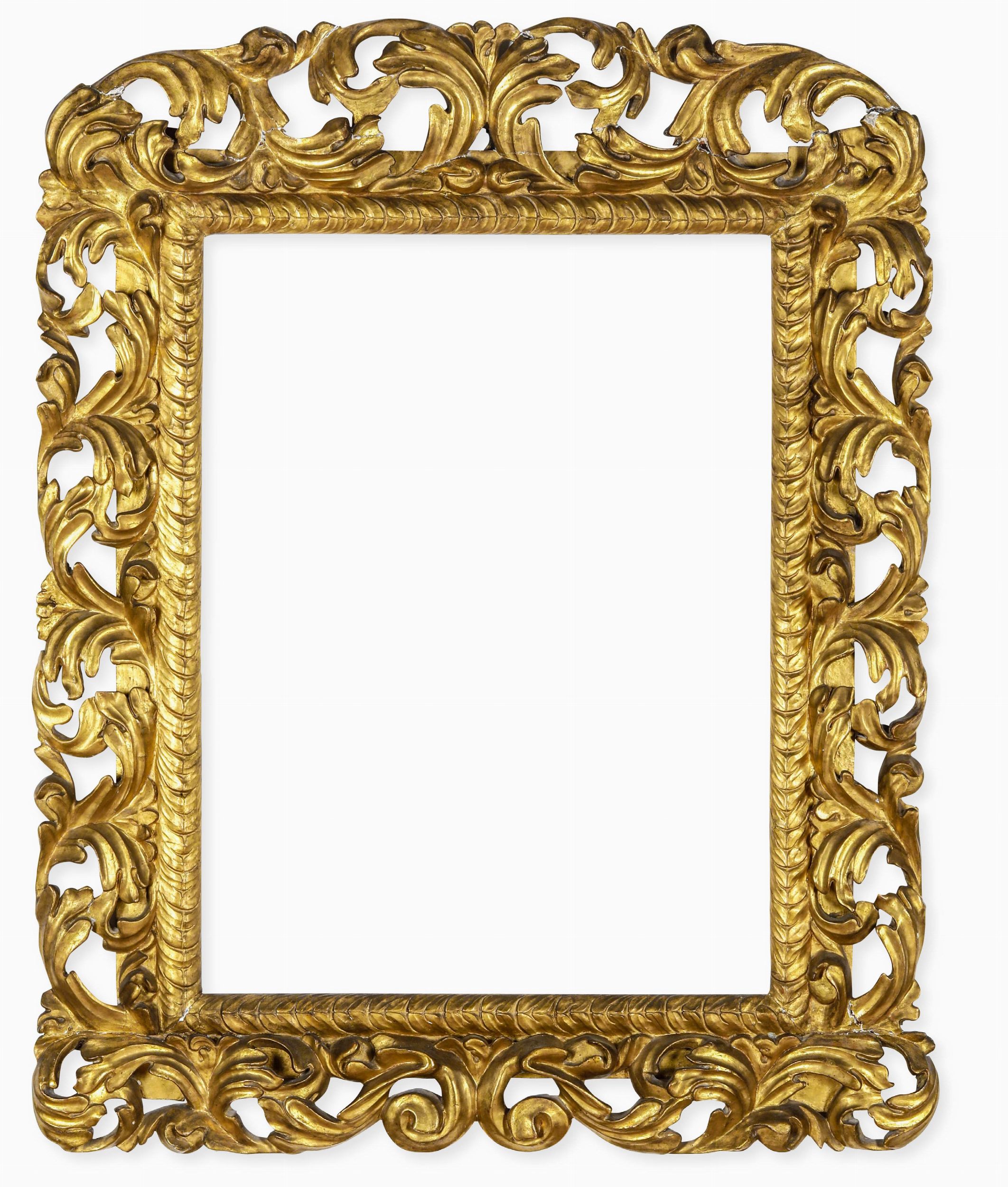 Cornice in legno intagliato, traforato e dorato. XVII-XVIII secolo
