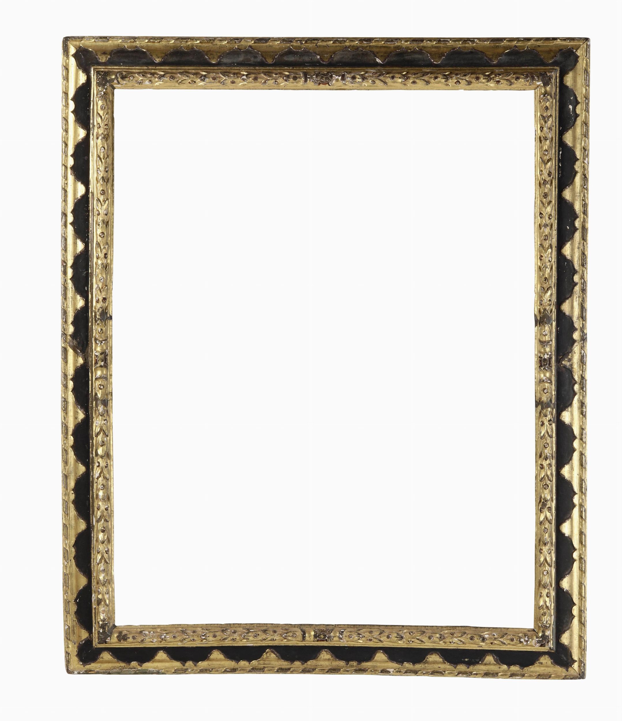 Grande cornice in legno intagliato, dorato e laccato. XVIII secolo