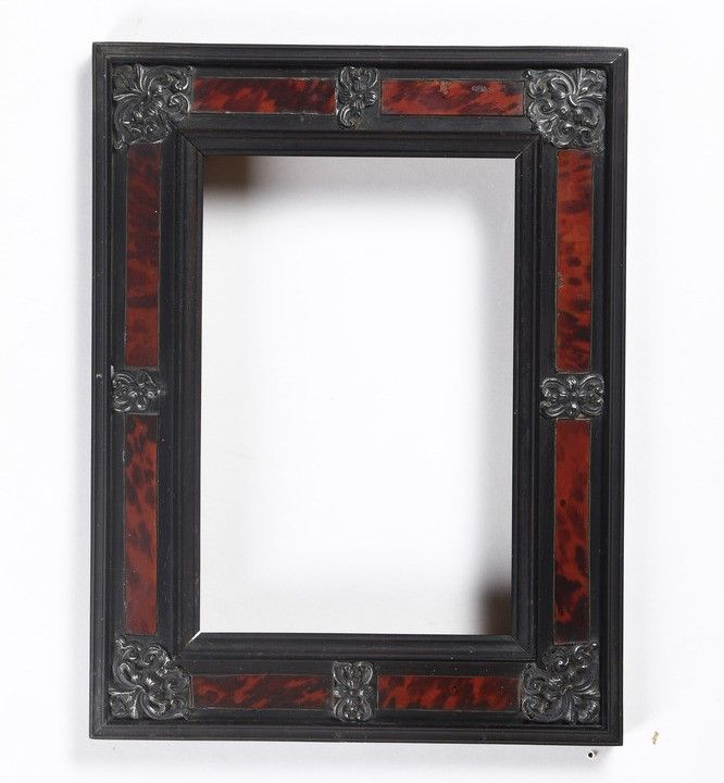 Piccola cornice in ebano, tartaruga e decori in lamina d'argento. XVII-XVIII sec [..]