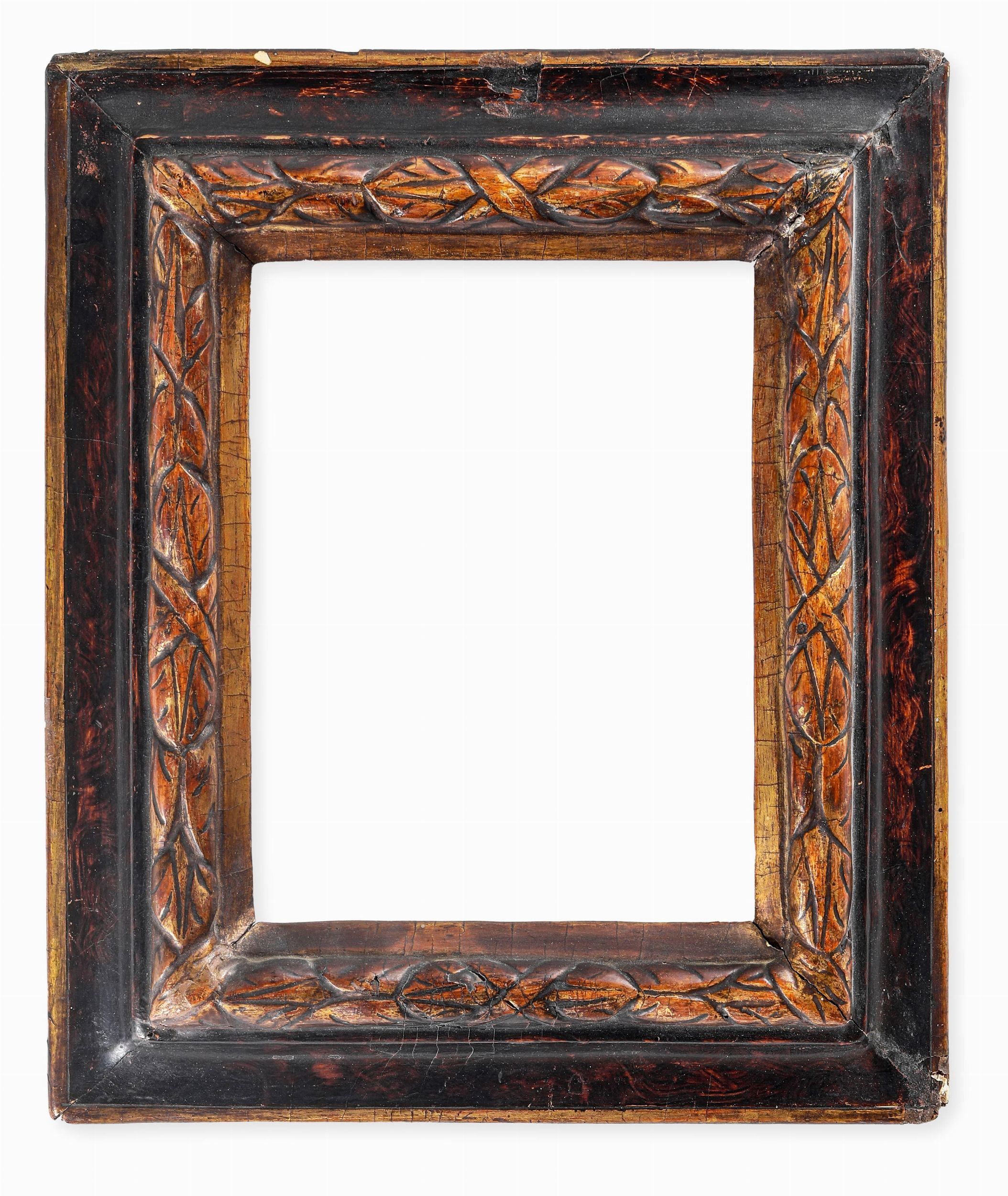 Piccola cornice in legno scolpito, dorato e marmorizzato. Italia centrale XVII s [..]