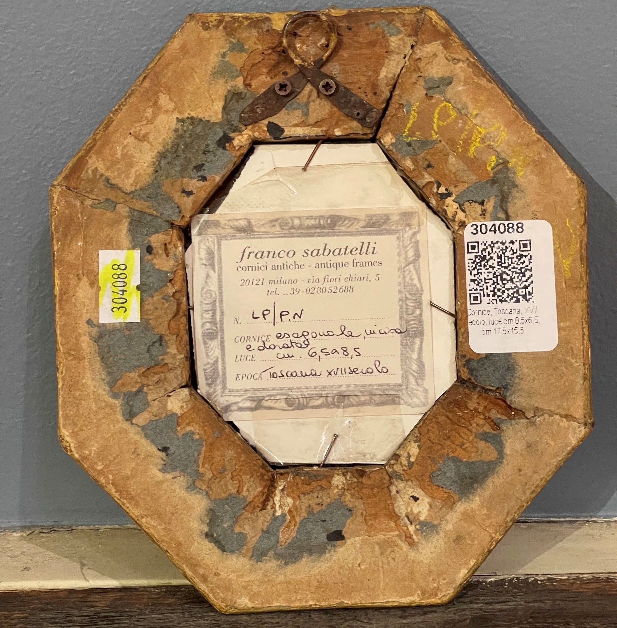 Piccola cornice ottagonale. Toscana, XVII secolo