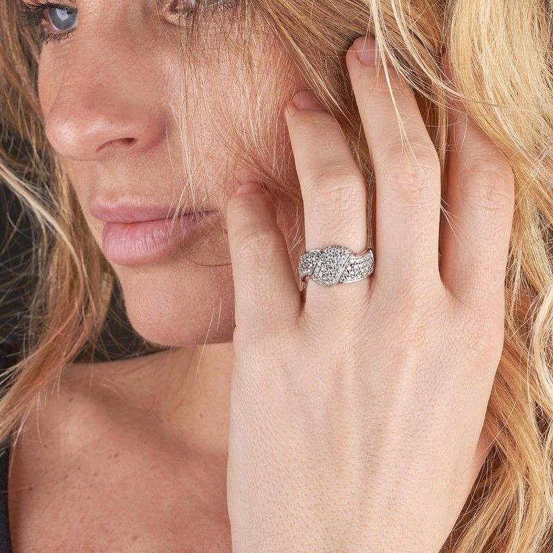 in oro bianco 18kt, impreziosito da pavé di diamanti taglio brillante per ct 0.80 circa, mis. 11/51, gr. 9